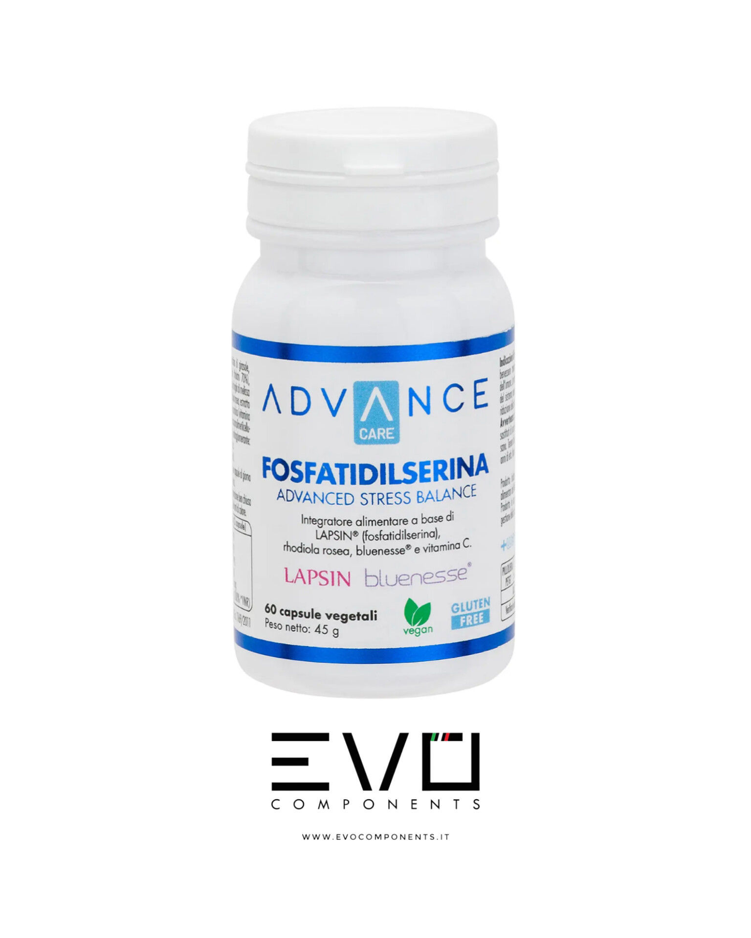 Fosfatidilserina Advanced Stress Balance è un integratore alimentare in capsule vegetali che unisce LAPSIN® (fosfatidilserina da lecitina di girasole), estratto di melissa Bluenesse® (Melissa officinalis L.), estratto secco di rhodiola rosea e vitamina C. La combinazione è pensata per favorire il rilassamento e il benessere mentale grazie alla melissa e per contribuire al normale funzionamento del sistema nervoso e alla riduzione della stanchezza e dell’affaticamento grazie alla vitamina C.