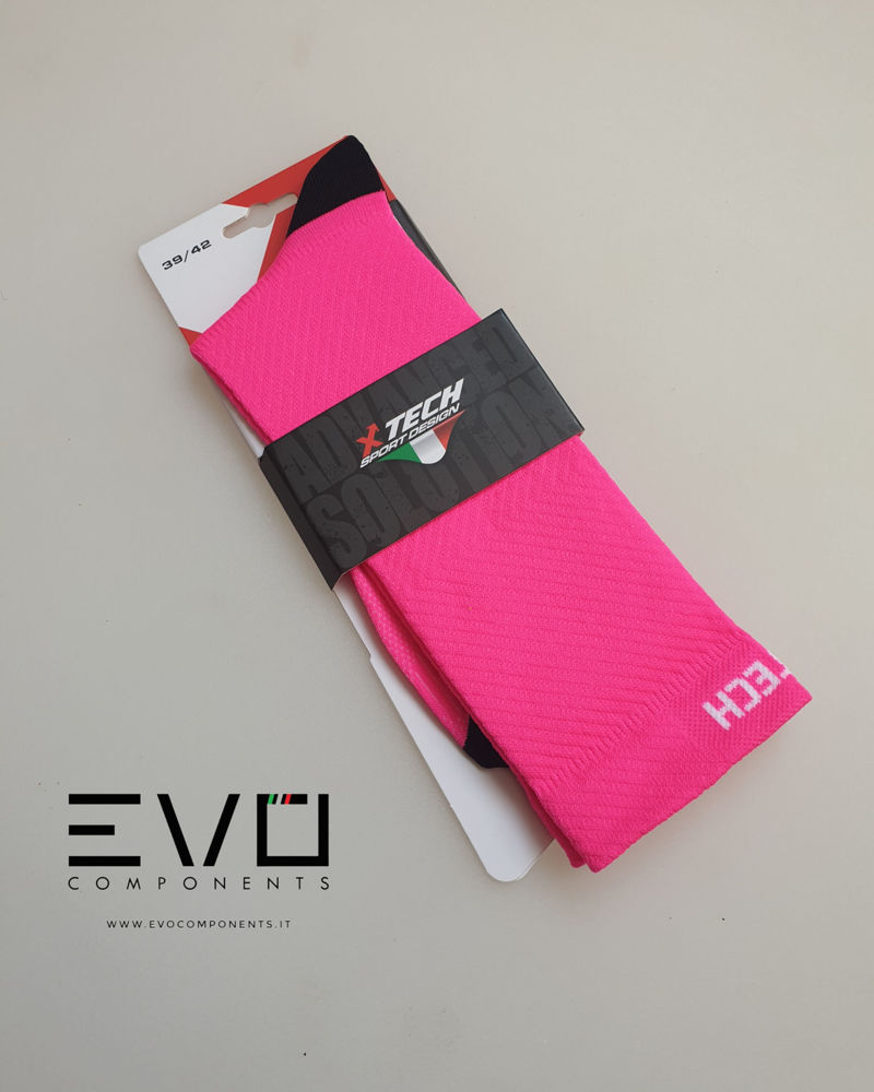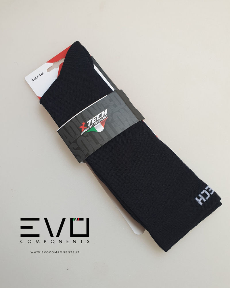 Calza tecnica realizzata con materiali estremamente traspiranti e morbidi al tatto.